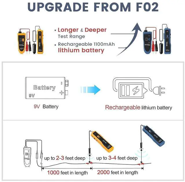 F02 Pro Underground Cable Detector with Earphones, Cable Tester for Dog Fence Cable, Irrigation Control Wires