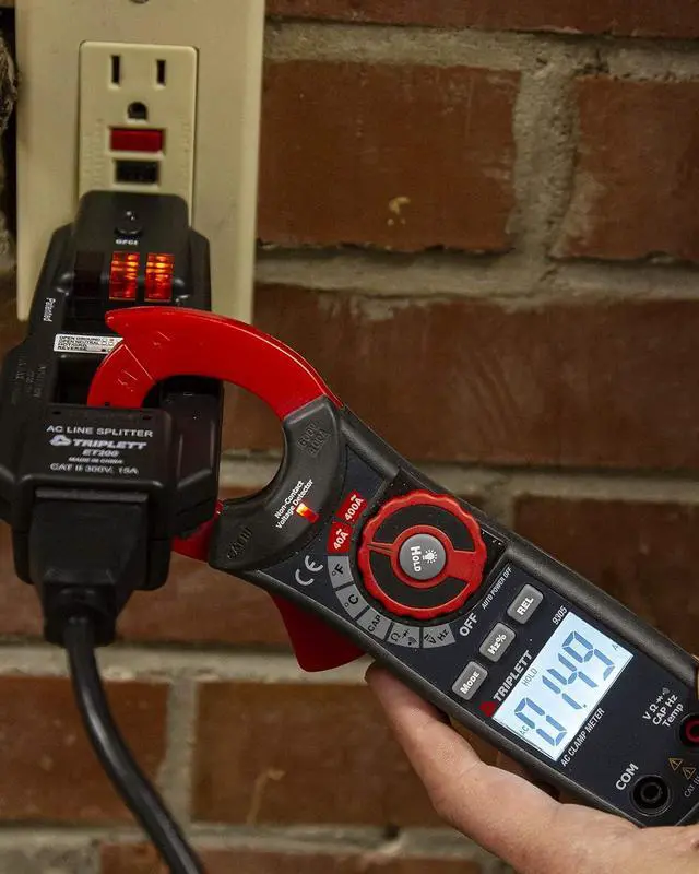 Check outlet wiring, measure voltage, and use your clamp meter to measure current up to 15A without breaking the circuit