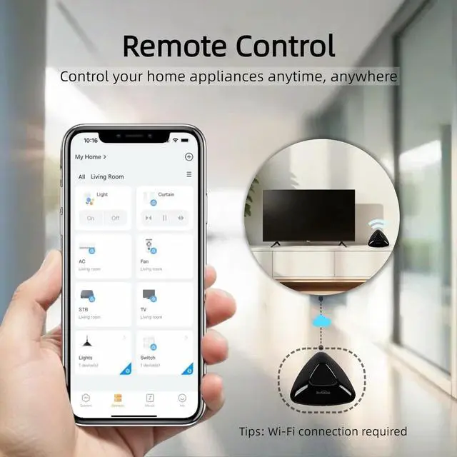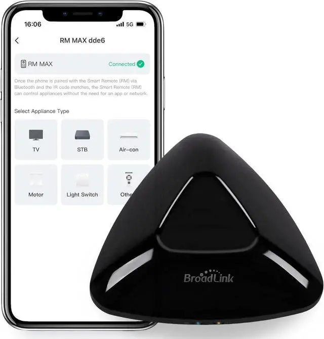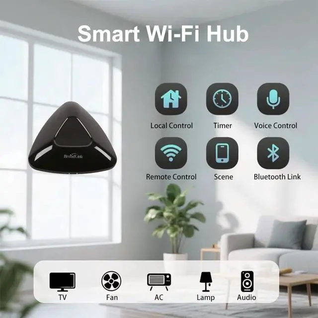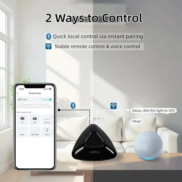 BroadLink RM MAX: The Next-Gen Home Control Hub with BLE. Control up to 24 devicesACs, TVs, curtains, lightsvia infrared (IR), radio frequency (RF), and BLE. Set up instantly with BLE pairing and operate offline. Switch Wi-Fi networks without resetting. Automate your home: Turn on the AC when doors open. Control via app or voice commands (Alexa/Google Assistant). Exclusive Vehstar curtain motor support. Free updates included.