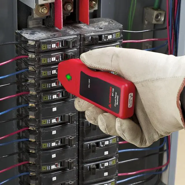 Receiver always finds the right breaker, automatic sensitivity adjustment removes ambiguity from the search by indicating the correct breaker with light and sound