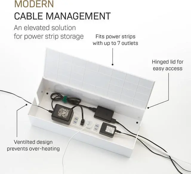 PERFECTLY PRACTICAL CABLE MANAGEMENT The Yamazaki Home award-winning cable management box supports power strips with up to 7 outlets. Bring elegance and streamlined technology to every room in your home, organize cables from the living room to home office.