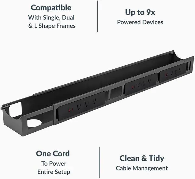 Heavy-Duty Powder-Coated Steel Construction Built to last with a durable black powder-coated finishresists bending and warping under the weight of cables and adapters.