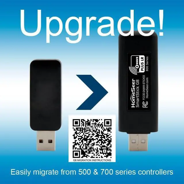 EASY MIGRATION (UPGRADE) FROM OTHER CONTROLLERS: SmartStick G8 supports Z-Wave network migration from other 500, 700 or 800 series controllers equipped with Z-Wave library (ZDK) v6.61 or later. YOU MUST USE Z-Wave JS UI v9.9.0 (or later) to accomplish this migration. HomeSeer (with Z-Wave Plus plugin) and Home Assistant, support this feature. DO NOT USE PC CONTROLLER OR ANY OTHER METHOD FOR MIGRATION - THIS WILL RENDER THE STICK UNUSABLE.