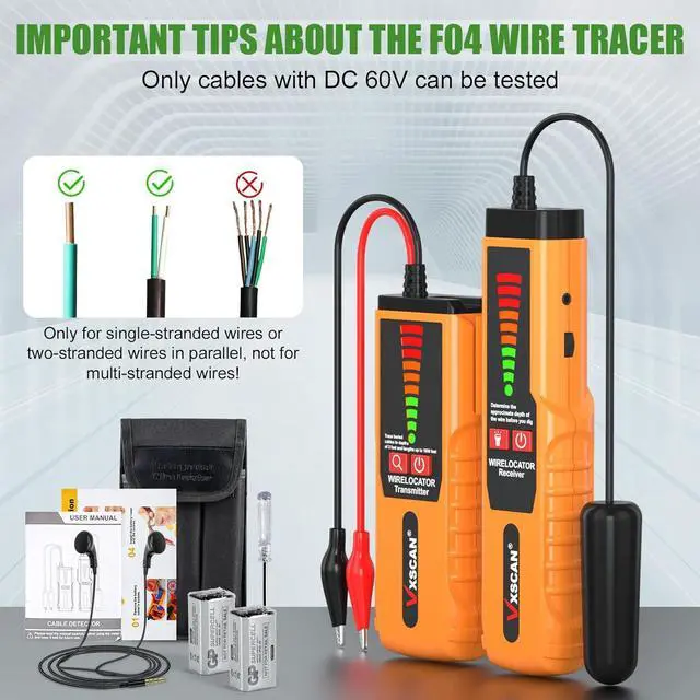• GREAT HELPER FOR YOU VXSCAN F04 underground wire tracer can help you quickly and accurately locate the break-point and direction of underground and wall-through cables. Detect and repair broken cables by yourself.