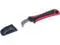 Double edged blade and comfortable double durometer handle allow the tool to cut on the push and pull stroke
