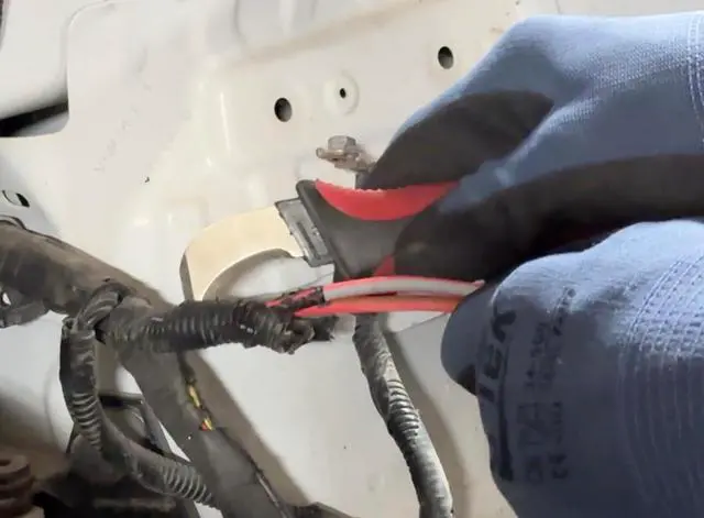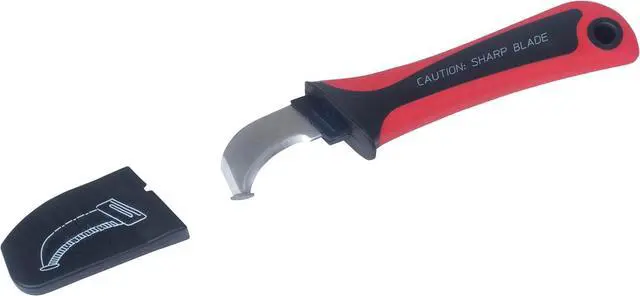 Sliding guide block at the tip of the blade helps prevent damage to wires