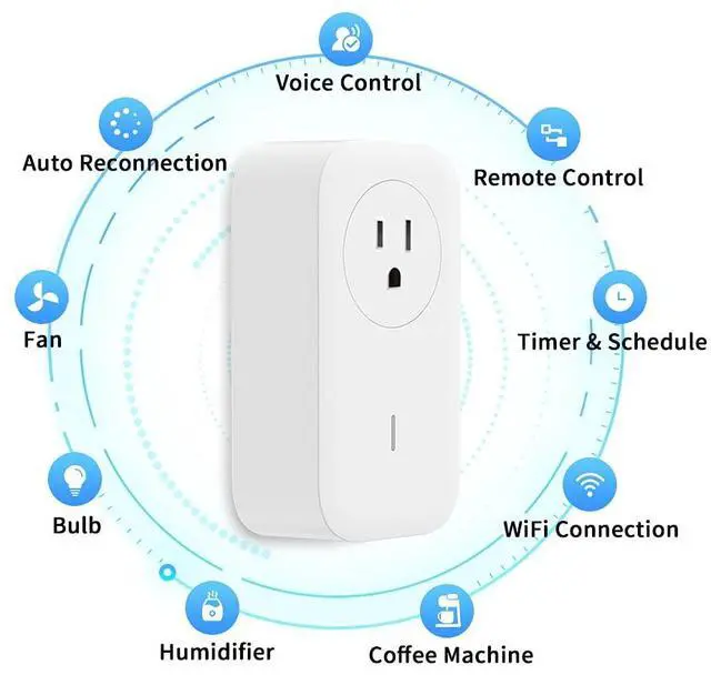 [Scheduling]: Use timer or countdown schedules set your smart plug to automatically turn on and off any home electronic appliances such as lamps, fan, humidifier, Christmas lights etc.