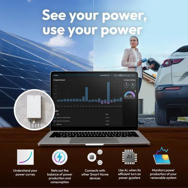 Smart Power Management, Maximize Efficiency, Minimize Costs - Home Energy Meter 8 It skillfully measures surplus power from sources like solar panels, ensuring not a single watt goes to waste. This intelligent device seamlessly connects to up to 2 phases/split phases of your mains power.