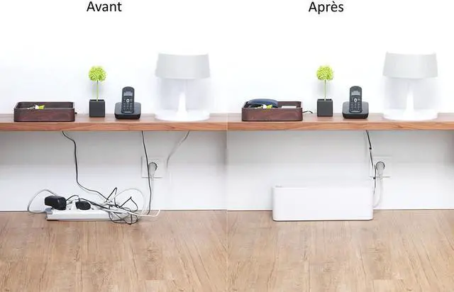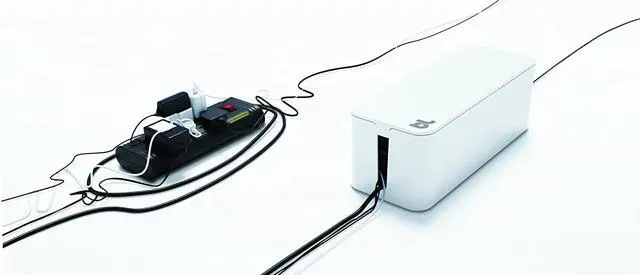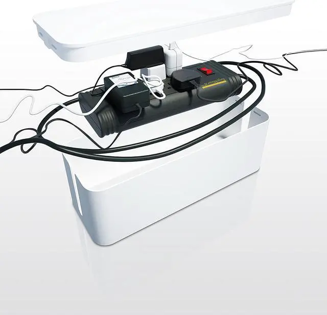 Compatible with both wide and long surge protectors. Surge protector not included Made of high-density flame-retardant plastic Two outlets on either side of the CableBox grant access to the cables you need Country of Origin: China