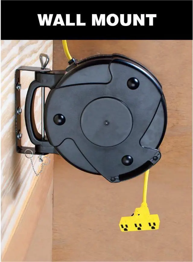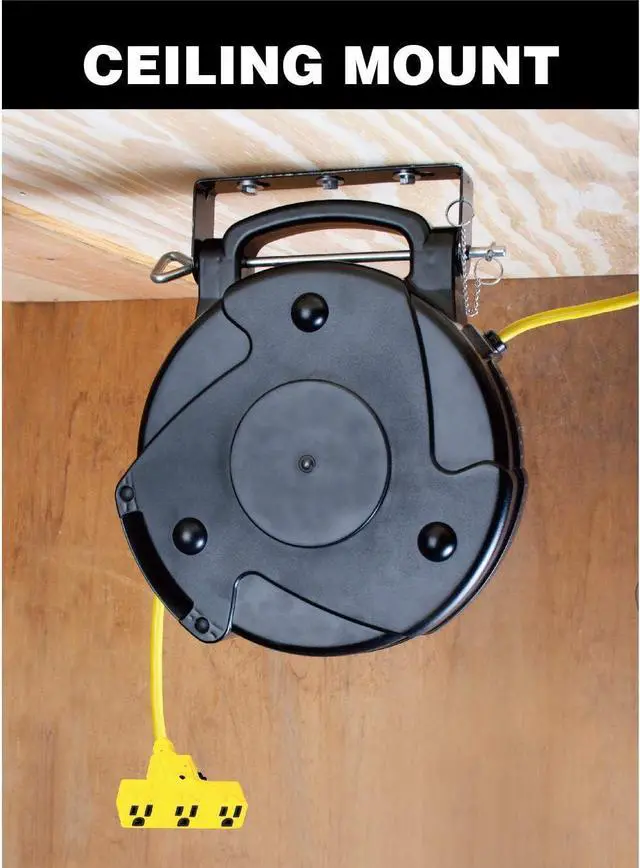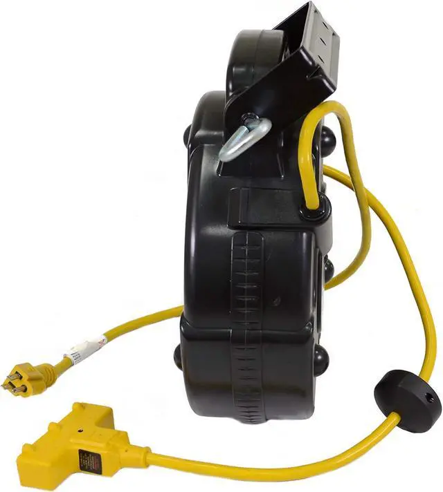 Industrial Retractable Extension Cord Reel w/ Tri-Tap and Circuit Breaker