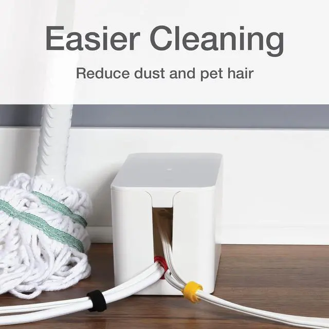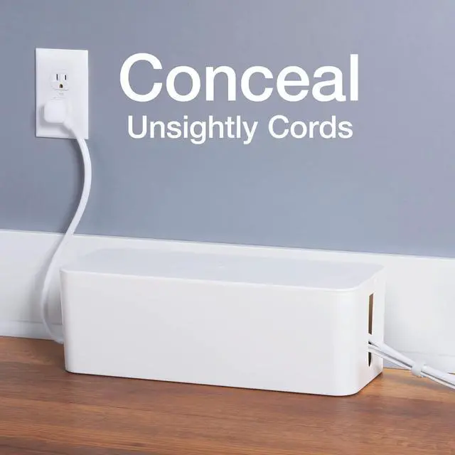 The versatile sizes allow you to conceal various sized chargers, power strips, adapters, HDMI cables, USB cables, and surge protectors; clean up tangled, messy cords and prevent tripping and accidents