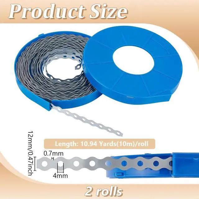 • Size Reference-- You will receive 2 rolls of metal strapping, each measuring 10m/10.9 yards in length, 12 mm/0.47 inch in width, and 0.7mm in thickness