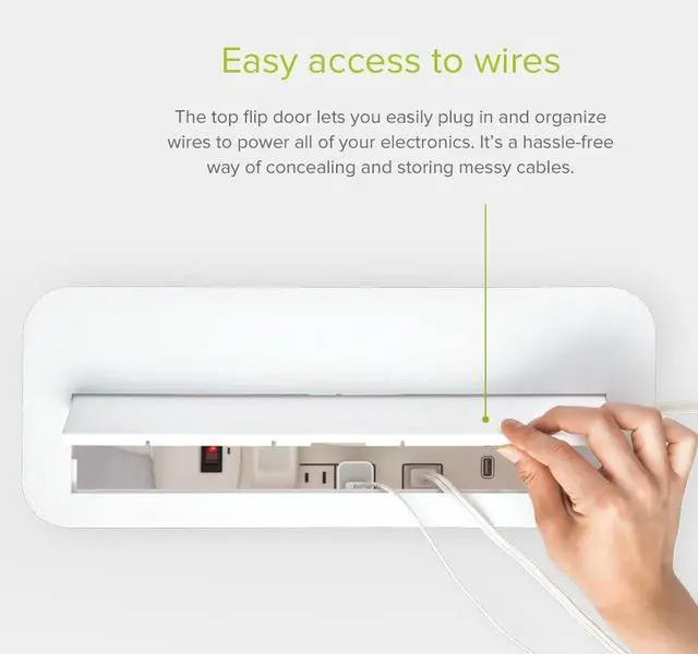 • TOP FLIP DOOR & SIDE OPENINGS- The top flip door (XL box) lets you easily plug in and organize wires to power all of your electronics. It's a hassle-free way of concealing and storing messy cables. Also, you can access your cables/cords through openings in the left, top, and right sides.