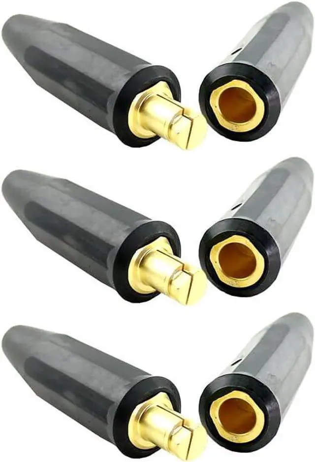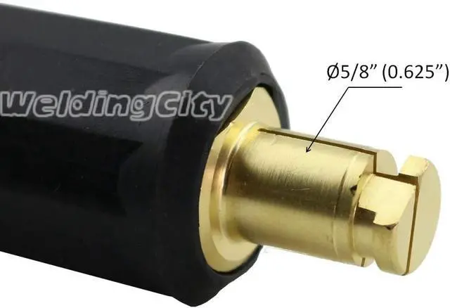 Tweco style male connector pin diameter 5/8" (0.625"); Female terminal adapter 2-AF/CT-40FA 45-deg with stud-hole diameter (ID) 17/32" (0.531") works with Tweco 2-MPC/4-MPC and Lenco LC-40/LC-40HD. Different combination and quantity of connectors (Male, Male/Female pair, Female adapter, Male/Female adapter) are available as shown in first picture.