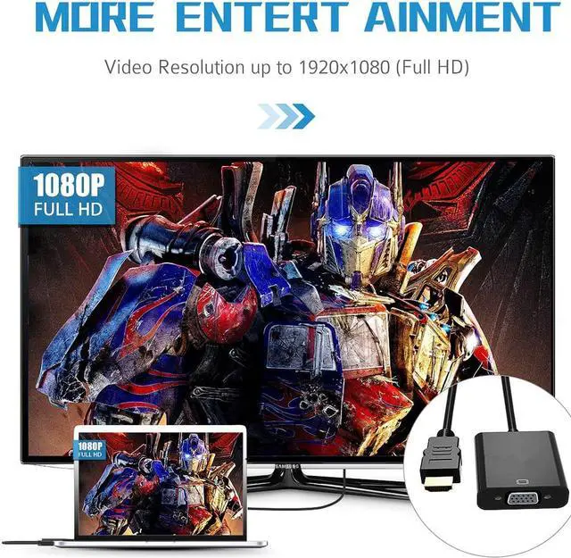 Product description This HDMI to VGA convertor can connect your input device with HDMI port to HD display output device with VGA port that you can enjoy the HD video or slides, and indulge yourself in more powerful music by HDTV, projector, epidiascope and so on. Its output resolution is up to 1920 X 1080P.