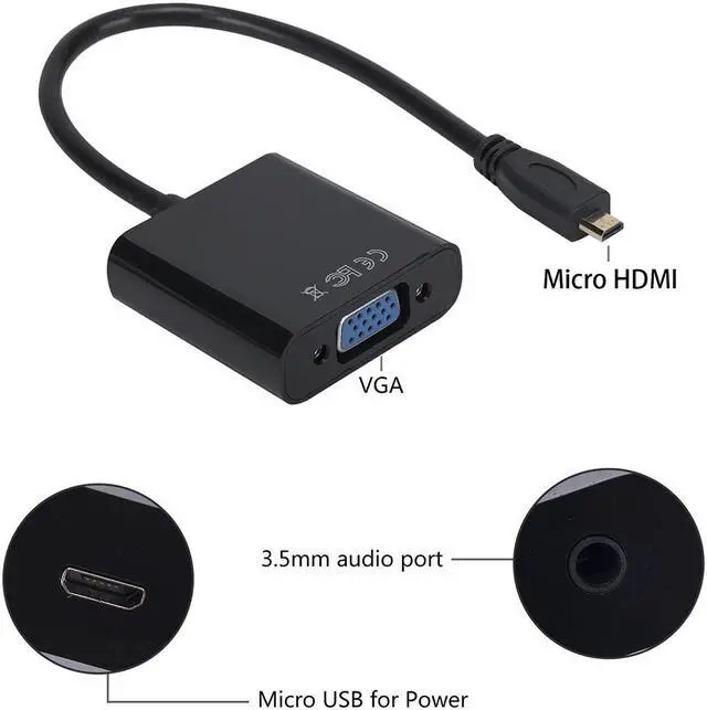 Built-in active IC chip converts to improve compatibility between equipment and displays. It can not transmit signal from VGA to Micro HDMI.