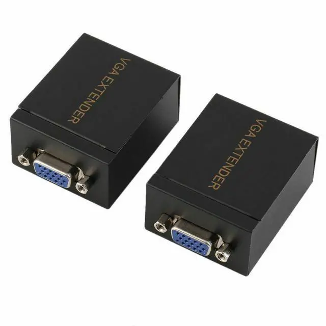 Features: Transmitting distance is up to 60 meters by Ethernet cable. Use CAT-5e/ 6 replaces VGA wire. Support IEEE-568B standard. Support all kinds of computer system. Support hard disk video recorder, monitor host and other equipment which has a VGA interface. Small, lightweight, no power and driver required, easy installation and flexible in wiring. Widely used in KYV, large screen display and other venues that need to extend the VGA signal to 60 meters by Ethernet cable.
