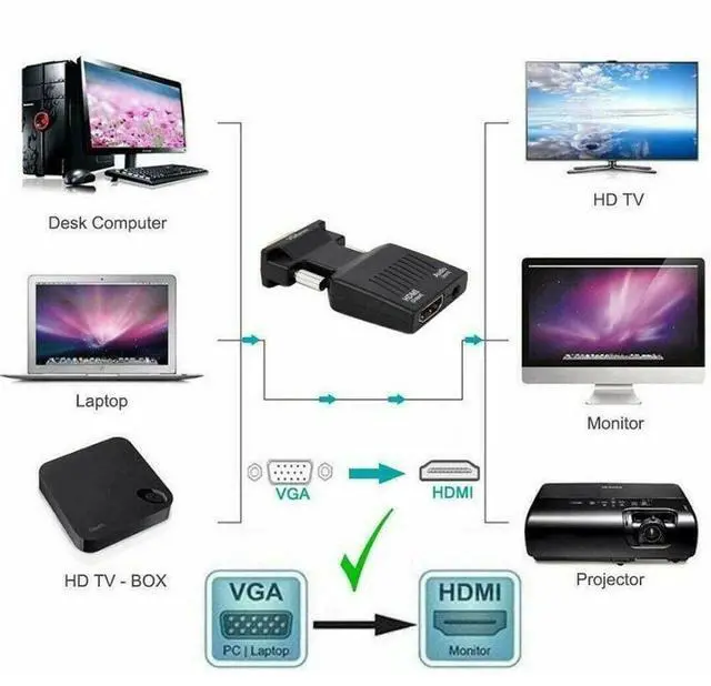 Great to share your video/audio/data from computers or old-styled notebooks, destops, laptops that has only VGA ports to any HDMI-equiped devices like HDTV, monitors, displayer for big screen viewing