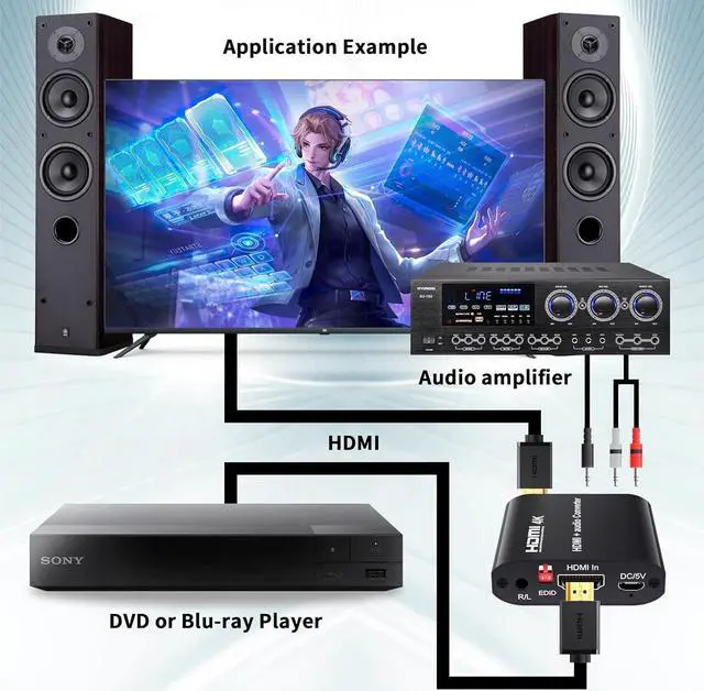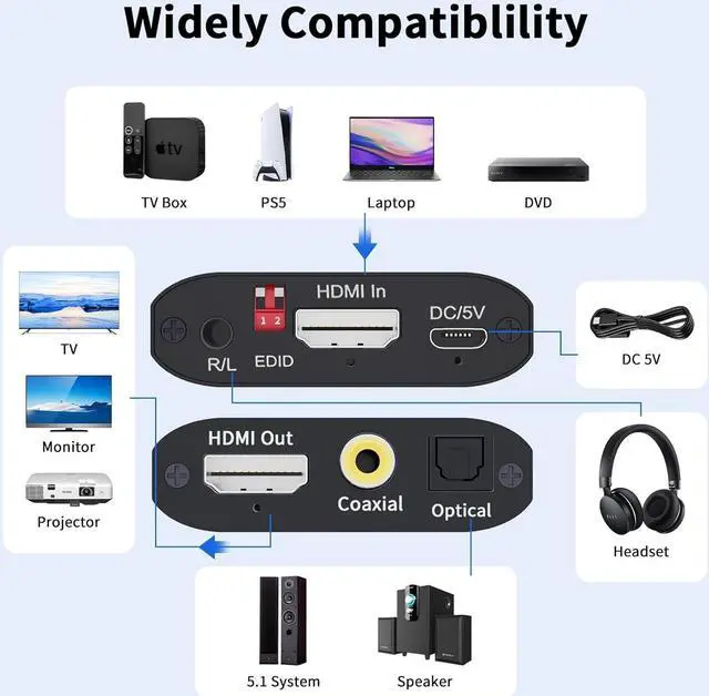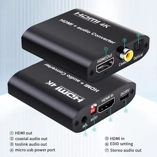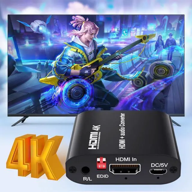 This UHD HDMI audio extractor from lets you separate stereo audio from your HDMI video signal and connect it to 3.5 mm audio devices, such as your stereo sound system or desktop speakers.