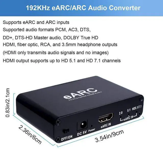 eARC/ARC Audio Converter adapter: ARC Audio return 7.1 Dolby Lossless ARC audio converter