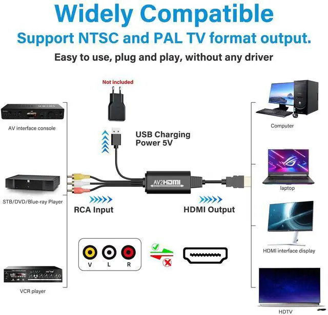 ![]() Adoreen Unidirectional RCA to HDMI Converter Cable 6 Ft, 3 RCA Composite CVBS... | ![]() Adoreen Unidirectional HDMI to RCA Converter Cable 6 Ft, 1080P HDMI to 3 RCA ... | |