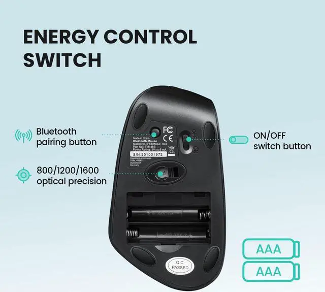 Perixx PERIMICE-804 Bluetooth Vertical Mouse, Bluetooth Connection for Windows and Android System, Works Without USB Receiver, Black
