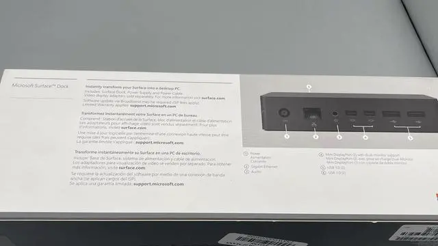 Get right to work Instantly transform your Surface into a desktop PC. Plug in the Surface Connect cable to charge your device and access external monitors, keyboard, mouse, and more. Find the perfect viewing angle, or position your device to take advantage of the robust pen capabilities. All the ports you need With two high-definition video ports, a Gigabit Ethernet port, four high-speed USB 3.0 ports, and an audio output, you've got all the connections you need in a sleek, compact design. Lightning fast with minimalist design Surface Dock uses Surface Connect technology which enables high-speed transfer of video, audio, and data over a single cable, keeping your desk clutter-free.