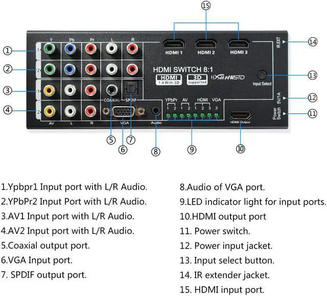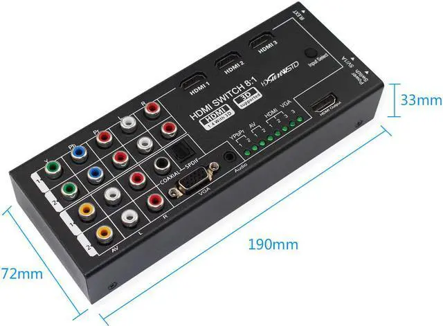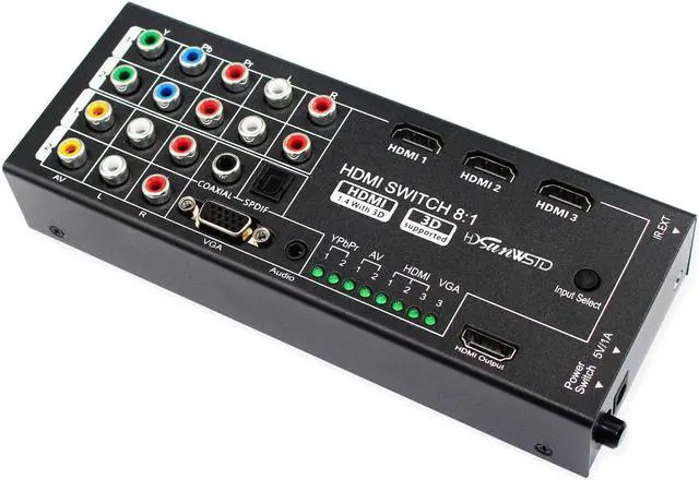 Multi-Functional HDMI 8x1 Converter Switch 8 Inputs to One HDMI Output Support 3D and Surround Sound for 1080P HDTV | VHD-MS8X1