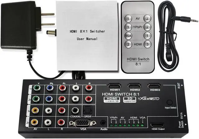 • This Multi-function HDMI Converter support to switch 8 channels of signal to 1 HDMI which support 3D and surround sound for 1080P HDTV. This product can be widely used in radio and television, outdoor large screen