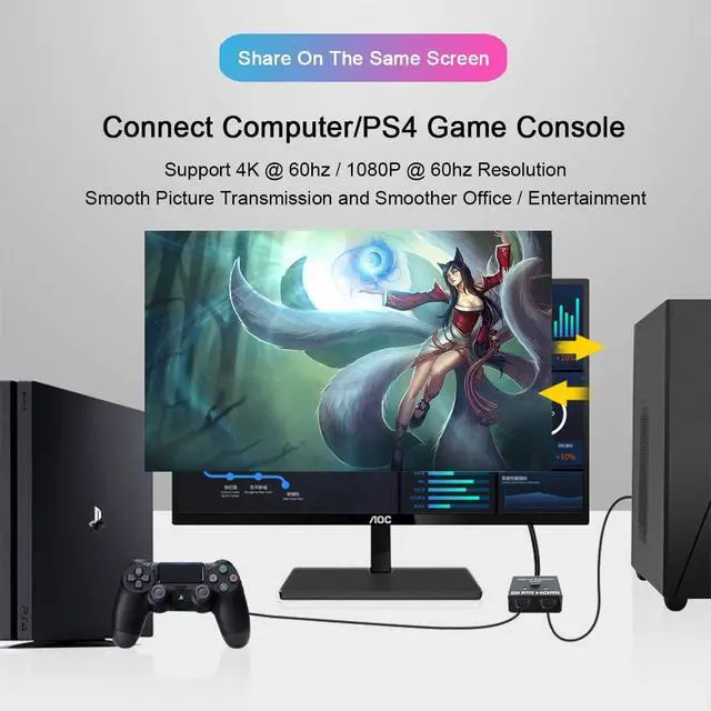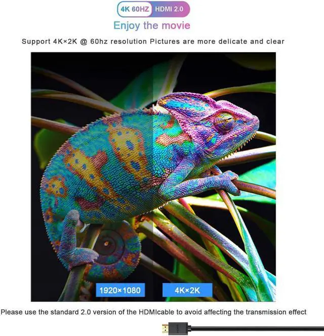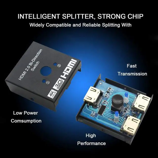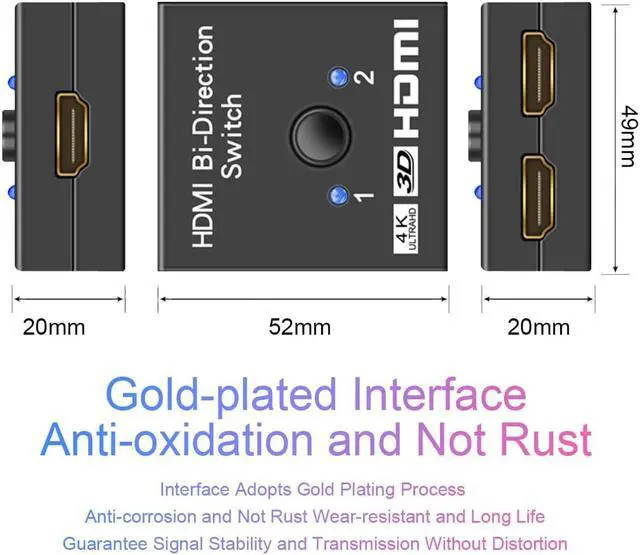 [4Kx2K 60hz ] Support 4Kx2K 60hz 1080P 60hz 3D and high-resolution audio support 18Gbps video bandwidth For everyday use a standard HDMI 2.0 cable is recommended. It is an HDMI switch not an HDMI splitter and can support bidirectional switching. [Easy installation] No need to connect the power separately plug and play. Because the HDMI switcher has low power consumption the power supply is satisfied by the way when the HDMI port is connected. After inserting the HDMI port the blue light is on to indicate normal operation. The HDMI terminal uses gold plating to prevent rust and signal degradation.