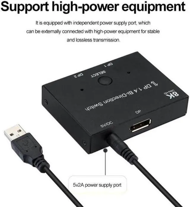 HD 8K DP 1.4 Splitter Switch 2 Ports Bi-Direction 8K@60Hz 4K@144Hz Converter HD 8K 3D HDCP For KVM Switch