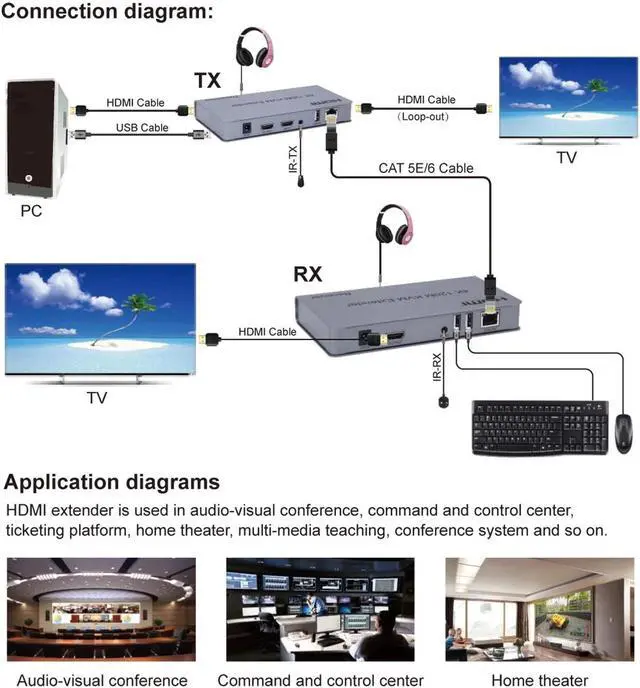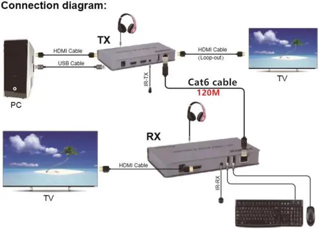 HD 4K 120M KVM -compatible Extender TX RX 4K 1080P 120M By Ethernet RJ45 CAT5e/6 Cable Local Loop-out With IR Remote