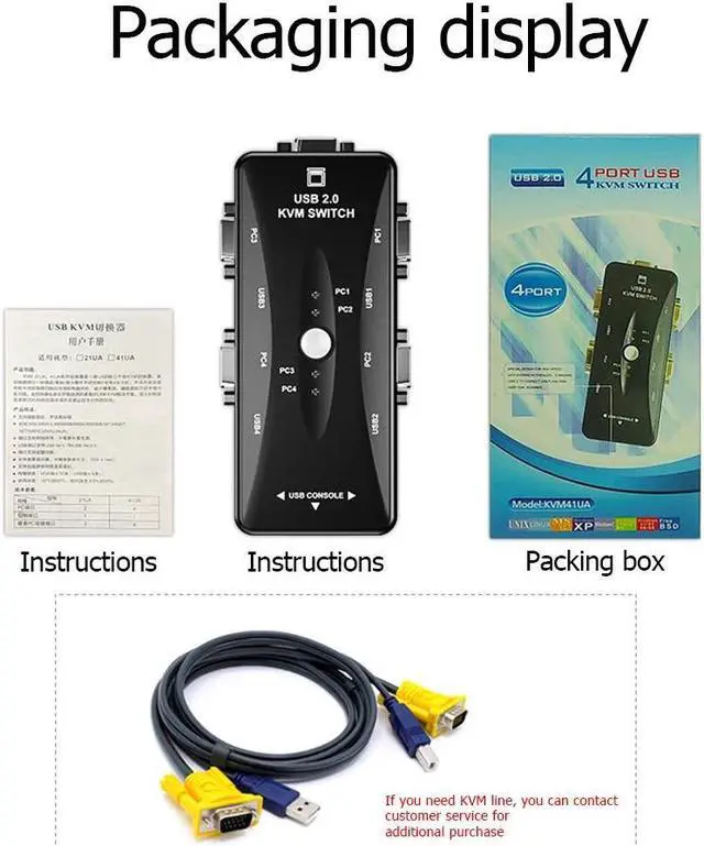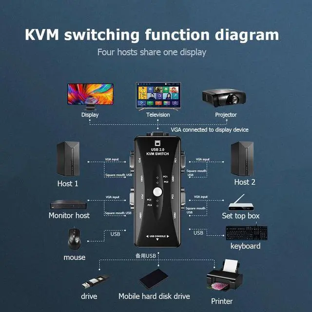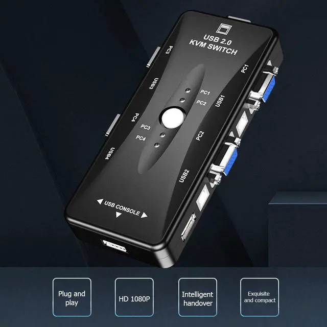 HW1702 USB Switcher 4 Ports in 1 Out 4K 1080P VGA Splitter Box for Sharing Keyboard Mouse Monitor