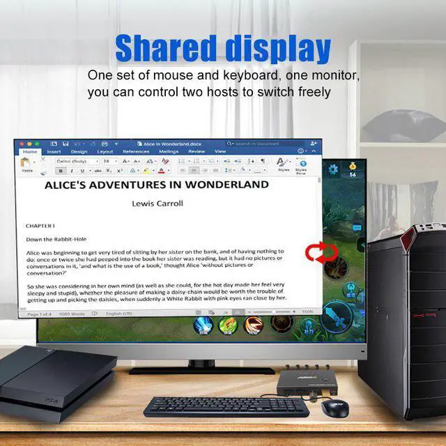 2 in 1 out design: This practical KVM Switch box enables to control 2 PC hosts to a single monitor and share a mouse and keyboard set.