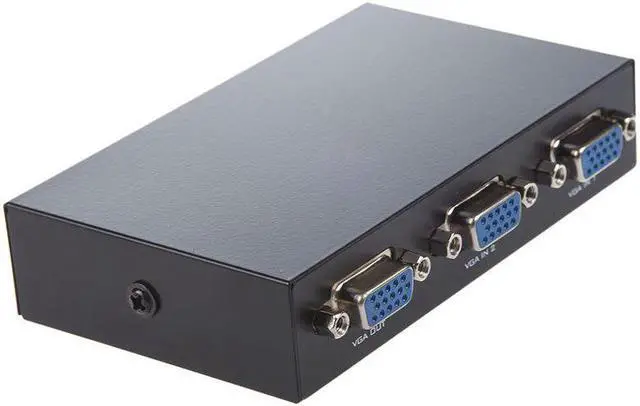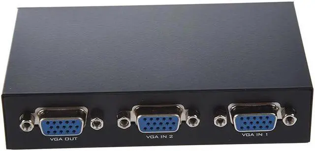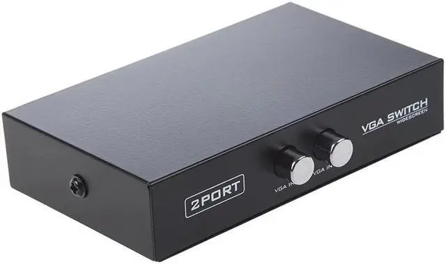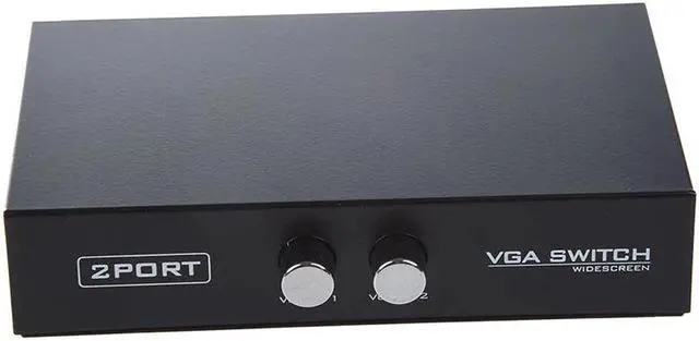 Product Name : VGA Switch;Type : 2 PortsResolution Ratio : 1920 x 1440;Main Color : BlackSize : 10 x 7.5 x 2.2cm/ 3.9" x 3" x 0.9" (L*W*H);Material : MetalNet Weight : 118.8gPackage : 1 x VGA SwitchCompact size and lightweight for convenient carrying. Press button switch for changing control. 2 share a computer display device, or 2 computers share a single display device, for the securities market, education and other industries. A VGA switch may be used in security setups where monitoring different areas of a building is required and switching between multiple inputs is a necessity No power needed.Note:Light ing and differnent displays may cause the color of the item in the picture a little different from the real thing.The measurement allowed error is ±1-3 cm.