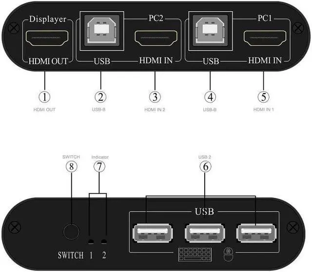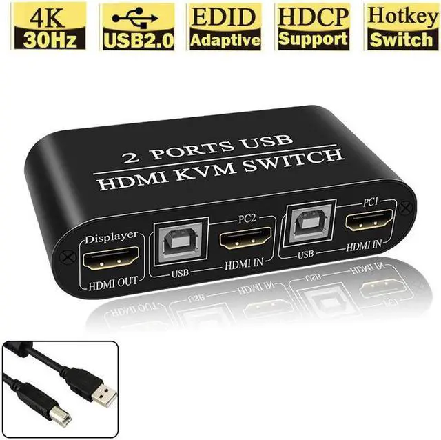 2 Ports USB KVM Switch 2 in 1 HMDI out 4K 30HZ For PC Computer Monitor