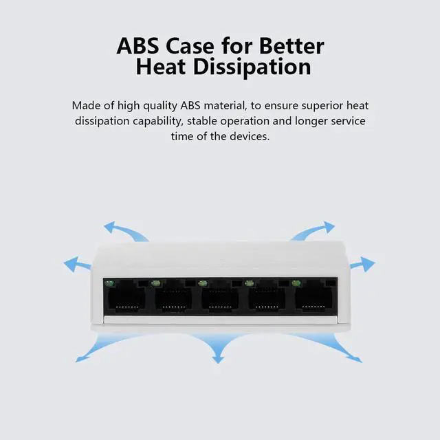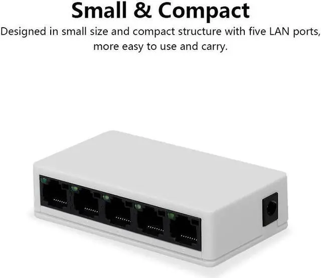 5 * 10/100Mbps auto-negotiation RJ45 ports, support plug and play, for easy using and supports 10/100M full duplex and half duplex.