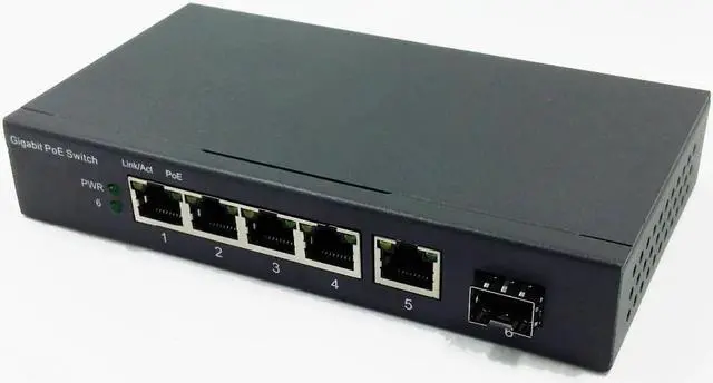 TS8204PF is easy to install and use. It requires no configuration and installation. With desktop design, outstanding performance and quality, the TS8204PF 5-Port Gigabit Desktop Switch with 4-Port PoE is a great selection for expanding your home or office network. an automatically detect and supply power with those IEEE 802.3af compliant Powered Devices (PDs). In this situation, the electrical power is transmitted along with data in one single cable allowing you to expand your network where there are no power lines or outlets, where you wish to fix devices such as APs, IP Cameras or IP Phones, etc. Key Features: * Supports PoE power up to 15.4W for each PoE port * Supports PoE power up to 60W for all PoE ports * Supports PoE IEEE 802.3af compliant PDs * Supports IEEE 802.3x flow control for Full-duplex Mode and backpressure for Half-duplex Mode * 4 ports with poe, 1 port 10/100/1000M RJ45 and 1Port Gigabit SFP * External power adapter supply Ordering Information: TS8204PF, 5 -port 10/100/000Mbps With 4- port PoE
