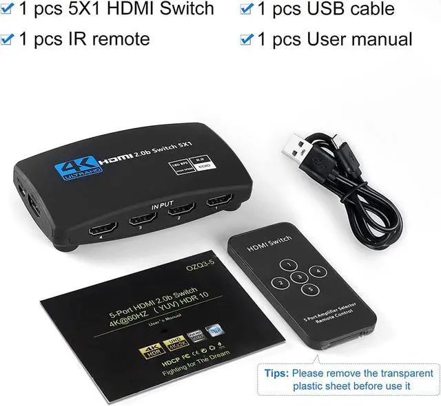 5 ports HDMI Switcher Packages included: