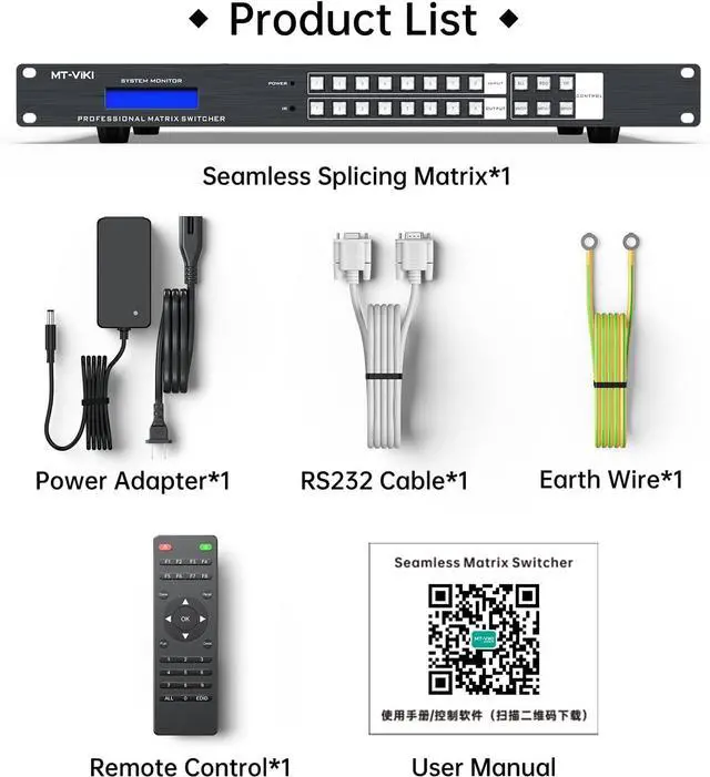 4K60Hz 8x8 Seamless HDMI 2.0 Matrix Video Wall Controller, MT-H2M88H