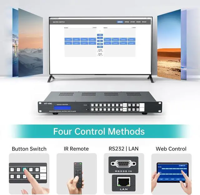 Multi Control Mode: WEB control, Button, IR remote control RS232/LAN port and Android APP