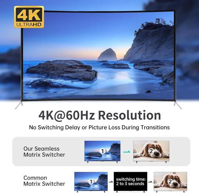 Support resolution up to 4K@60Hz, 1080P@60Hz, HDMI 2.0, HDCP 2.2, RGB
