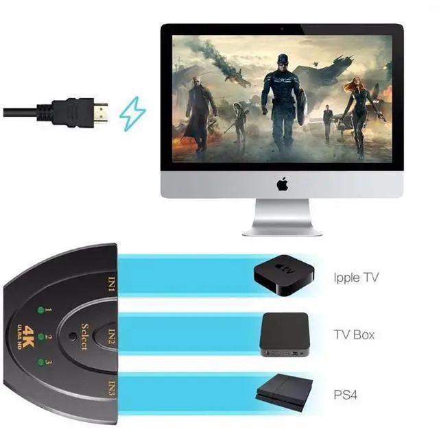This 3 input to 1 output HDMI-compatible switcher has the key-press-switching function and has the inteligent function. The 3 input to 1 output HDMI-compatible switcher routes high definition 4k*2k video and digital audio from any one of the 3 sources to display unit. Three inputs accommodate the simultaneous connection of high definition video sources, such as HD player, Blu-ray player, Set Top Box, P&S3, Xbox360 etc. The output sends the high definition audio/video signals to a high definition display like HDTV.