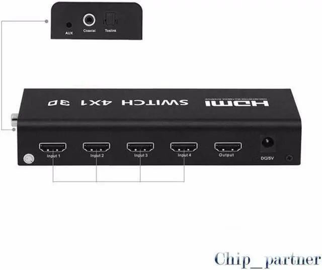 4K*2K HDMI Converter Splitter 4 in 1 out Digital Optics Audio Splitter 3D Video