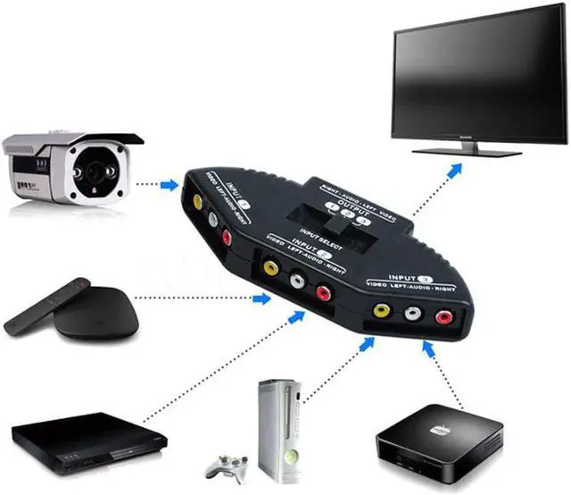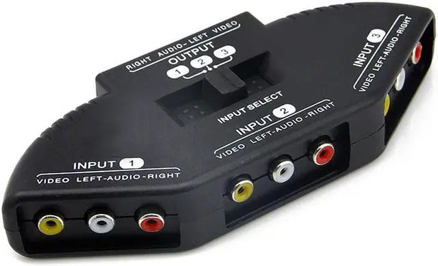 3-Port Selector AV Audio Video Switcher Splitter Cable AV RCA Hub Gaming Switch for Nintendo Wii TV DVDP4PM