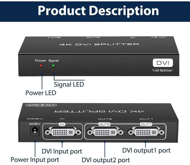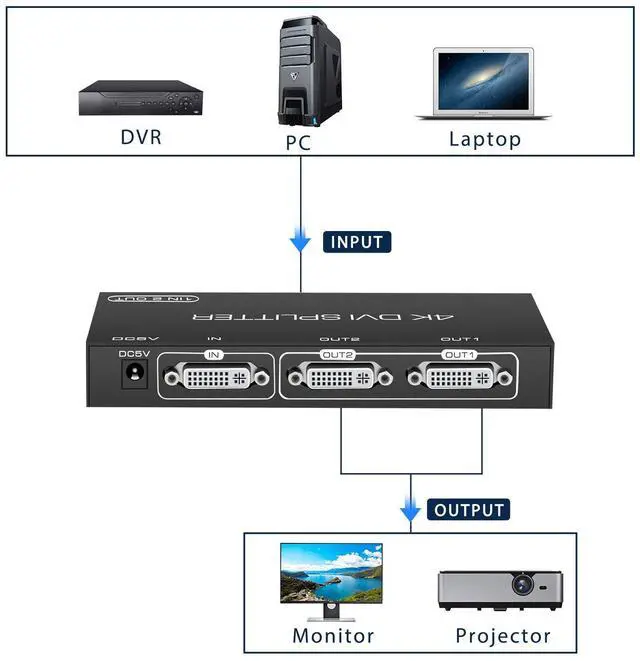 The splitter suitable for most devices with standard DVI interface.It can be widely used in commercial exhibitions, conference rooms, education and training, home theater and multimedia teaching etc.