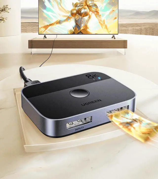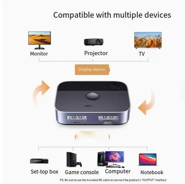 UGREEN DP Switch 8K 2 in 1 out computer screen HD bi-directional conversion line splitter TV set-top box 2-in-1 drag 2 extended display frequency splitter