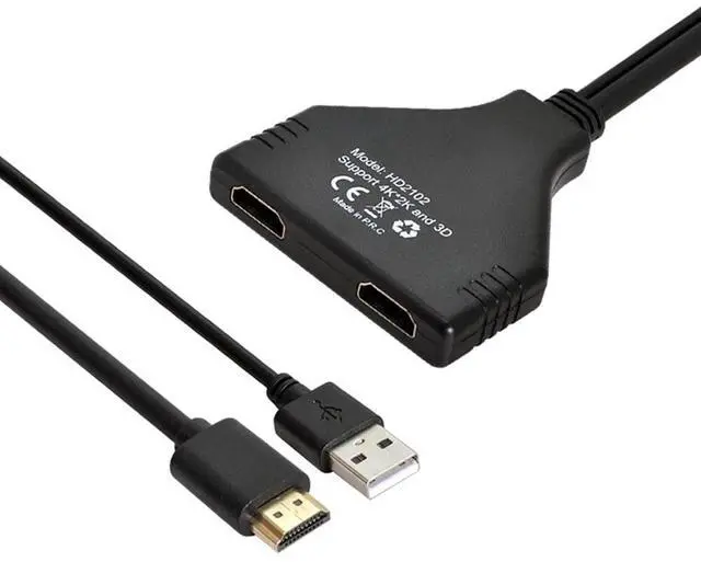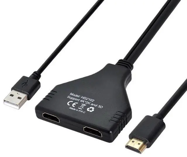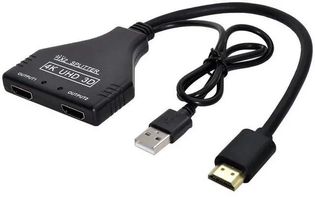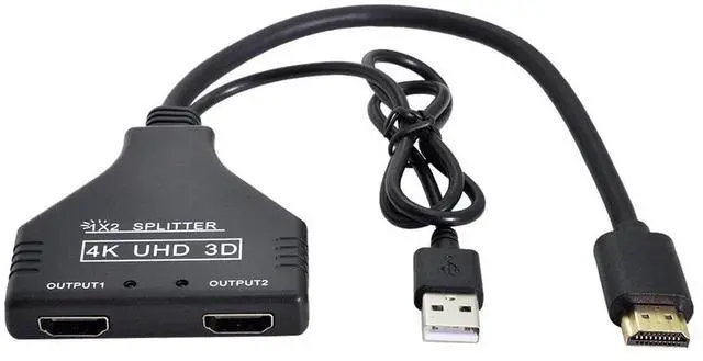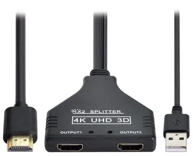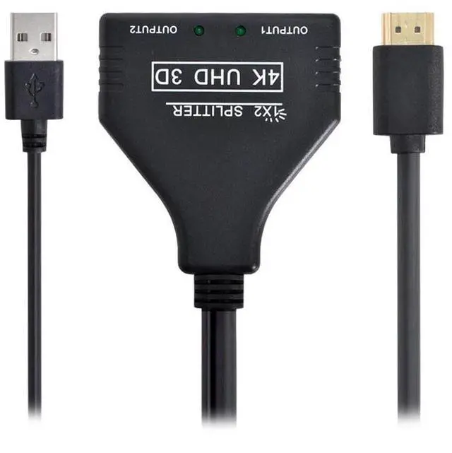 4K HDMI Splitter 1 in 2 Out with Power USB Cable for Monitor Support 3D Full HD