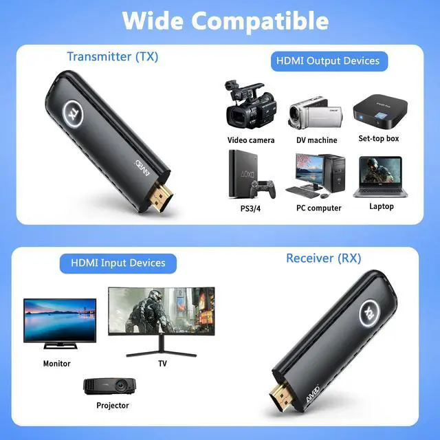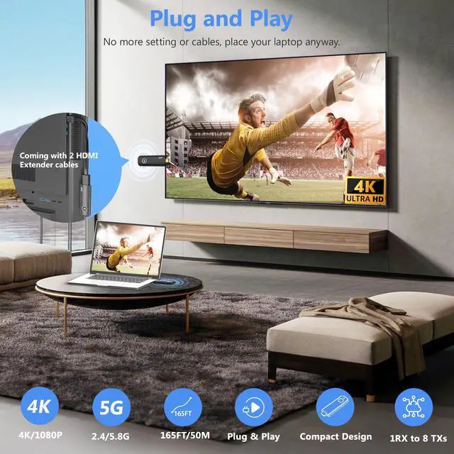 - Long-Range Transmission: Enjoy wireless HDMI casting with a remarkable transmission range of up to 165 feet/50 meters.