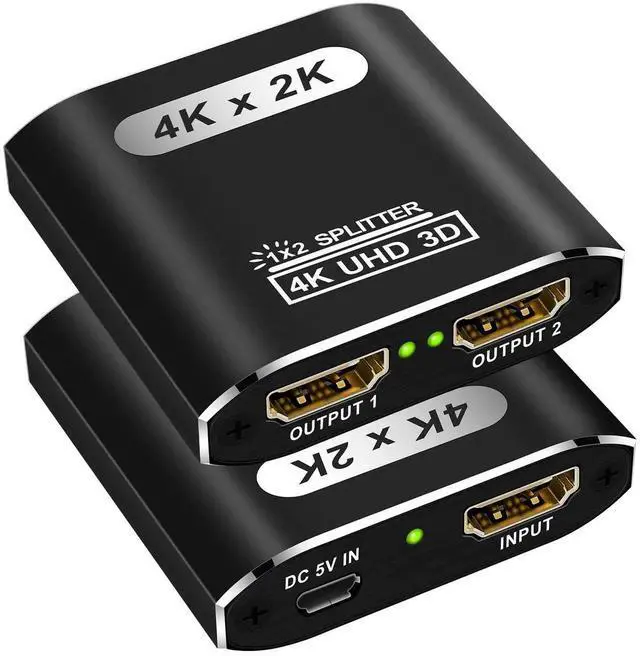 HDMI Splitter 1 in 2 Out, 4K HDMI Splitter for Dual Monitors Supports 3D Full HD 1080P Aluminum HDMI Spliter Dual Monitor HDMI Adapter Compatible for PS4 Fire Stick HDTV(1 Source to 2 Displays)